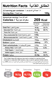 المكونات: حليب بقري طازج ،ملح طعام ، منفحة ميكروبية، الدسم ٤٠٪ من المادة الصلبة . جبنه نصف طرية معلومات الحساسية: يحتوي على (الحليب ومشتقاته )