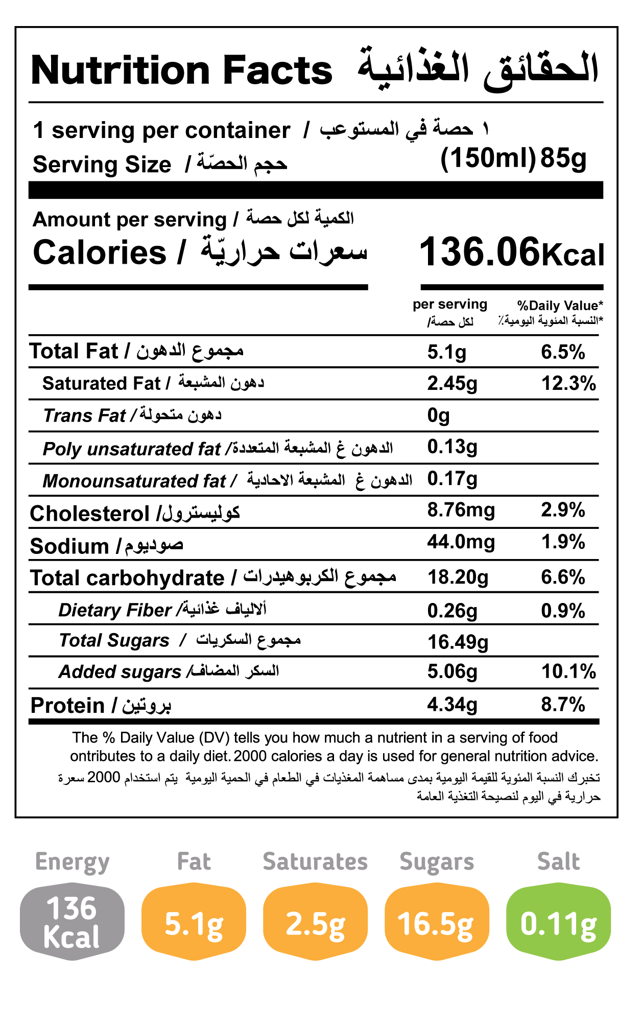 Ingredients: Cow’s fresh milk, Purified water, Sugar, Cow’s skimmed milk powder, Vegetable fat, Alphonso mango pulp, Natural identical mango flavour, Starter culture, Emulsifiers and stabilizers: carob bean gum, Guar gum, E471 (from palm oil), E477 (from Palm oil), Acidifier: Citric acid, Natural identical yogurt flavor. Allergen information: Contains Milk & Its derivatives. Keep Frozen (-18ºC), Content (150ml)